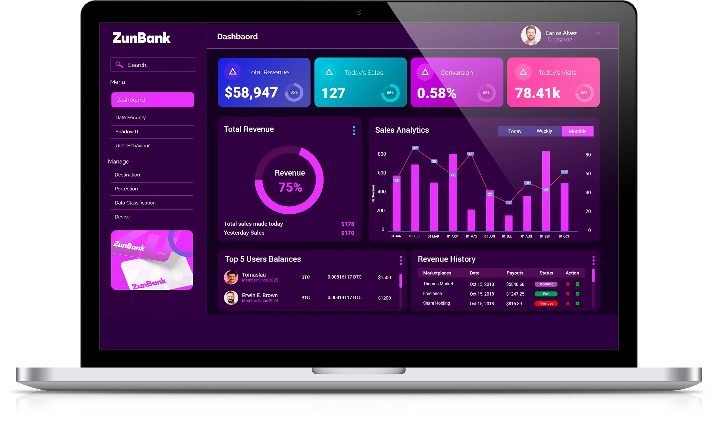 Painel com dados, filtros e exportações
